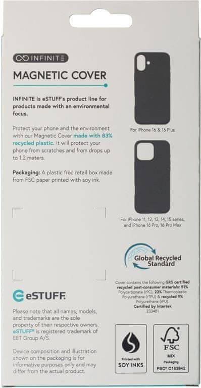 eSTUFF INFINITE (GRS) VENICE iPhone 16e Crna kožna magnetska maskica. Materijal: 65%