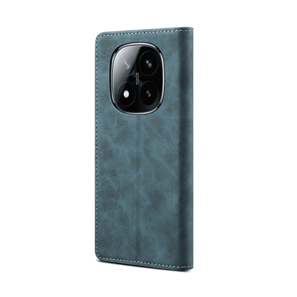 Usnjen klapovni ovitek za Redmi Note 14 Pro 5G modra – Zaštita šrečine pred praskama, Vgrajeno stojalo, Reža za kreditnu kartu, Magnetno zapirana.