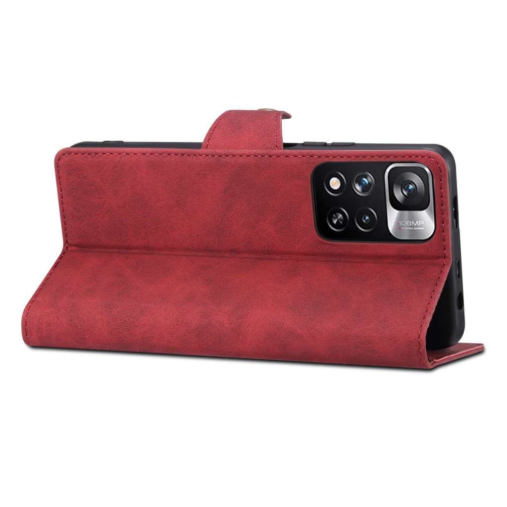 Usnjen klapponni ovitek za Redmi Note 11 Pro+ 5G, crveni – Zaštita telefona u ekranu prije prskanja u padci, Prostor za kreditne kartice, Ugrađena pohrana, Magnetno zatvaranje.