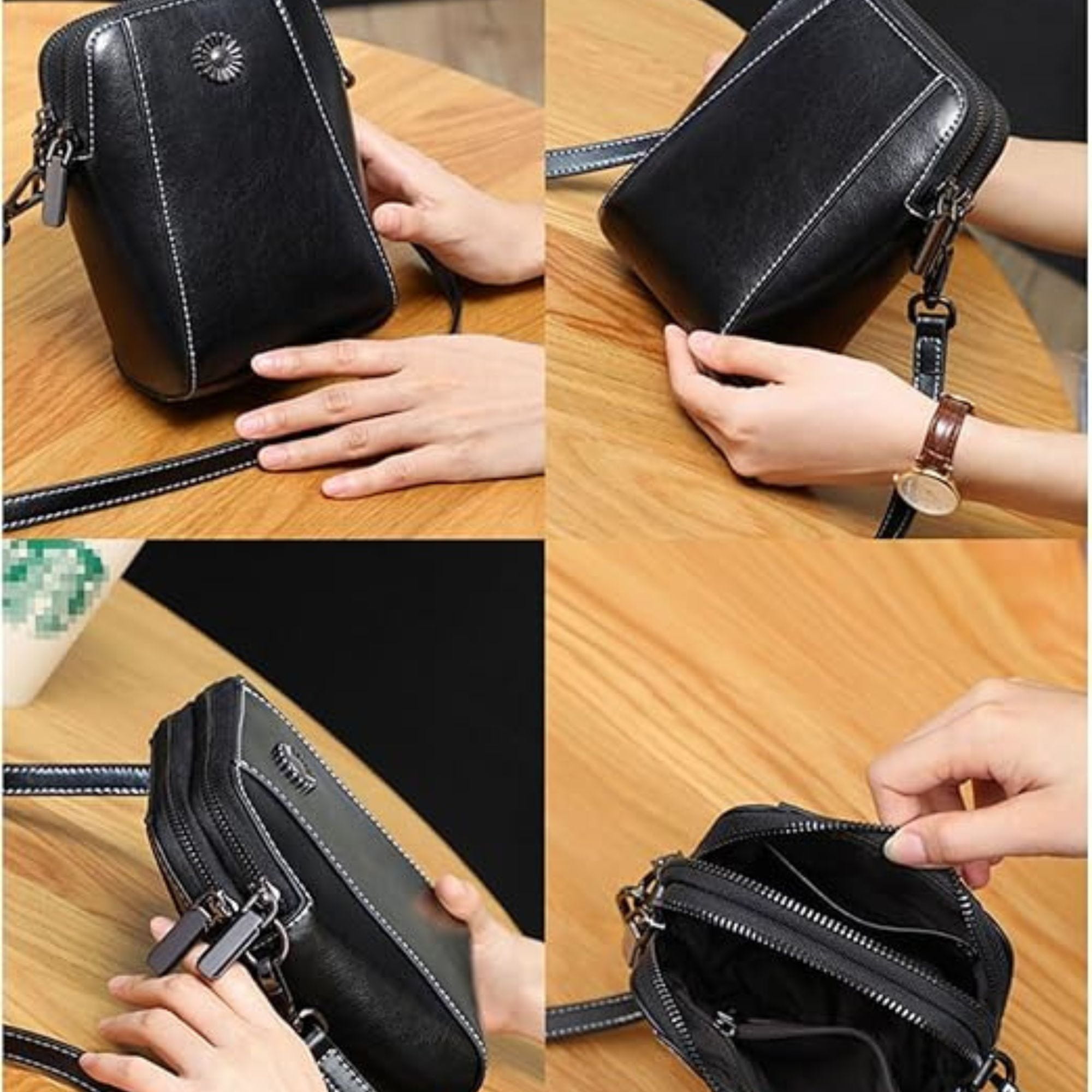 VIVVA® Trendi vertikalna torbica za mobitel preko ramena s podesivim remenom, PU koža | SUNIBAG Crna