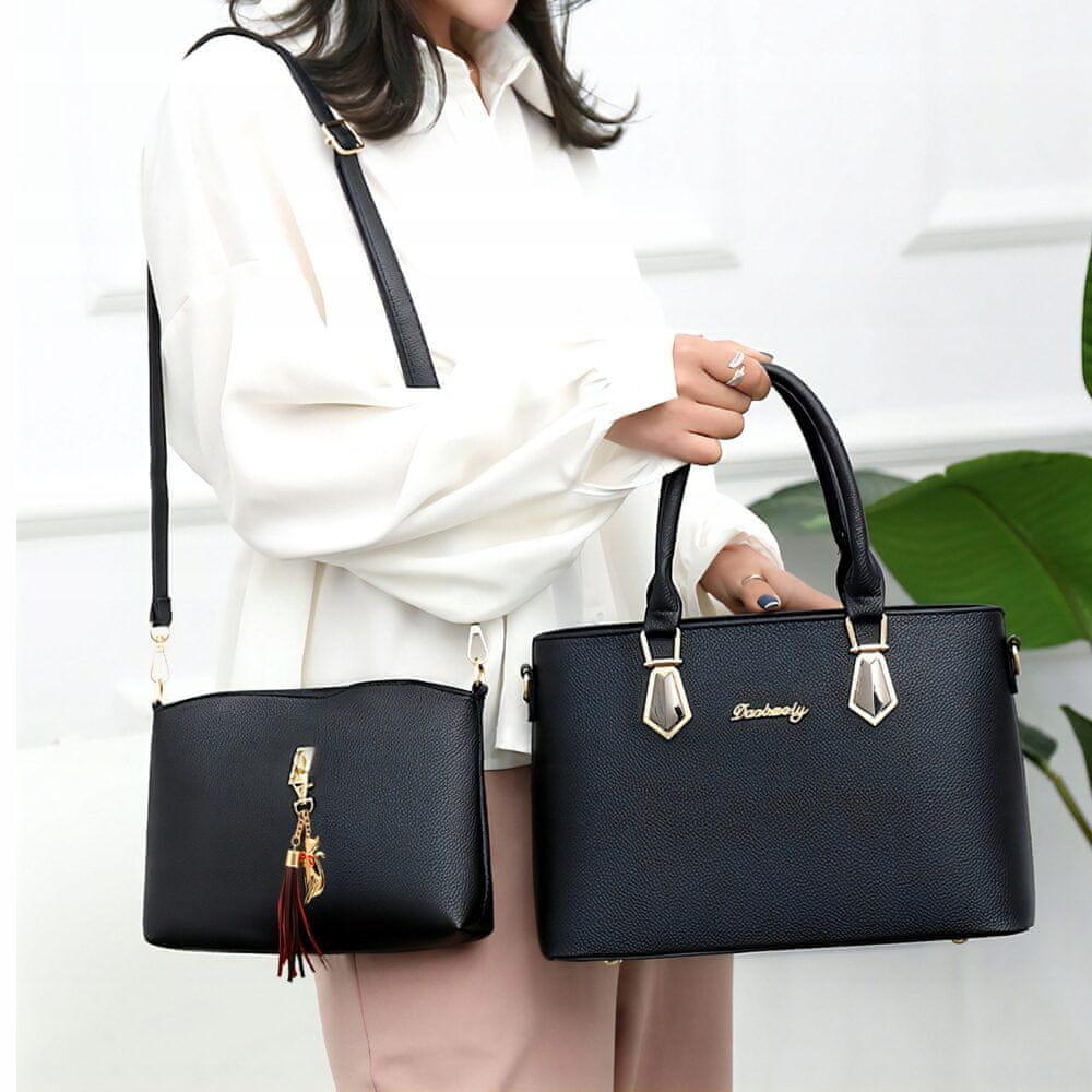 Otkrijte jedinstven stil i praktičnost u jednom. Komplet od dvije crne torbice od eko kože savršeno je rješenje za svaku ženu koja cijeni spoj elegancije i korisnosti. Ove crne torbice izrađene su od visokokvalitetne eko-kože, koja ne samo da podržava etički pristup modnoj industriji, već također osigurava otpornost i izdržljivost. Sa svojim promišljenim dizajnom i velikim unutarnjim prostorom, pružaju idealan način za organiziranje i nošenje vaših osobnih stvari.
