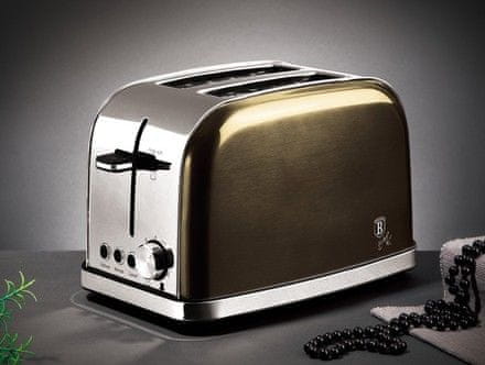 Materijal ovog proizvoda je: nehrđajući čelik – 7 razina podešavanja intenziteta tostiranja – automatsko izbacivanje kruha – automatsko centriranje za ravnomjerno zagrijavanje tankih i debelih tostova – protuklizna obrada donjeg dna – funkcije: – odmrzavanje / otapanje, tostiranje smrznutog kruha – podgrijavanje / ponovljeno zagrijavanje i podgrijavanje – otkazivanje / trenutni prekid rada prije kraja postavljenog vremena – funkcija visokog podizanja za jednostavno uklanjanje malih komadića kruha – odvojivi donji dio za uklanjanje mrvica i stoga jednostavno čišćenje – ulazna snaga: 850 W – boja: crna metalik – sjajna crna kolekcija – marka: berlingerhaus