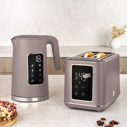 Ovaj digitalni toster u elegantnoj sivo-smeđoj boji ne nudi samo moderan izgled, već i praktične funkcije za praktičnu pripremu vaših omiljenih tostova. Zahvaljujući digitalnom LED zaslonu i sedam razina pečenja, lako možete postaviti točnu željenu stupanj pečenja.