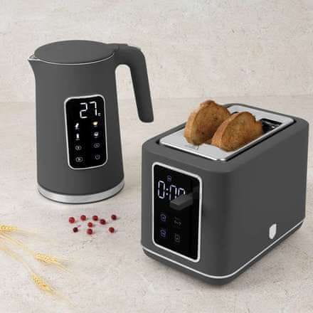 Ovaj digitalni toster u elegantnoj mat antracit boji ne nudi samo moderan izgled, već i praktične funkcije za praktičnu pripremu vaših omiljenih tostova. Zahvaljujući digitalnom LED zaslonu i sedam razina pečenja, jednostavno možete postaviti točnu željenu stupanj pečenja.