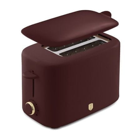Tehnički parametri:• Materijal: nehrđajući čelik s plastičnim kućištem• 220–240 V 50/60 Hz 750 W• Boja: mat bordo Karakteristike:• Funkcija brzog zagrijavanja• Iznimno široki otvori: 130*30 mm• Poklopac za prašinu• Funkcija otkazivanja• Protuklizne nožice• Uklonjiva posuda za mrvice• 6 razina pečenja• Spremnik za kabel