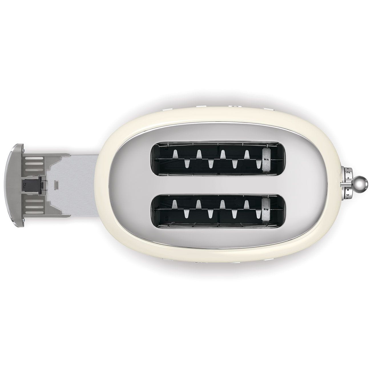 Toaster u retro dizajnu ulazne snage 950 W. SMEG TSF01CREU ima 11 stupnjeva grijanja, automatsko centriranje uloška i automatsko izbacivanje toasta na kraju. Odmrzavanje, pečenje i jedostrano grijanje posebno su zgodne značajke.