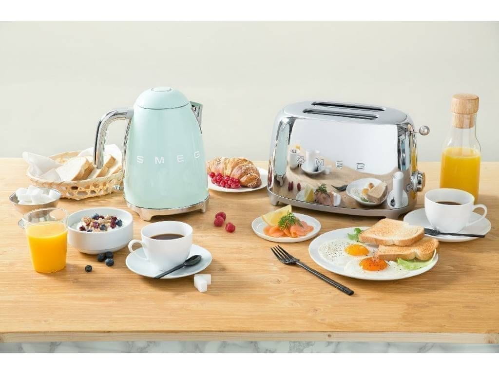 Toaster u retro dizajnu ulazne snage 950 W. SMEG TSF01SSEU ima 11 stupnjeva grijanja, automatsko centriranje uloška i automatsko izbacivanje toasta na kraju. Odmrzavanje, pečenje i jedostrano grijanje posebno su zgodne značajke.