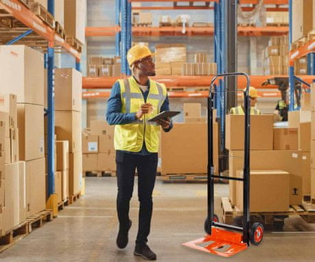 Ručna kolica opremljena su kompaktnim, stabilnim kotačima i ergonomskom ručkom koja omogućuje bolji hvat i kontrolu pri premještanju tereta.