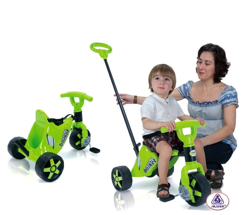 Dječji tricikl BASKET 330 od španjolske tvrtke Injusa, namijenjen za djecu od 1 godine. Trokolica s mogućnošću dodavanja ručke za roditelje, sa sigurnosnim pojasevima i prostorom za odlaganje dodataka u prekrasnom zelenom dizajnu. Multifunkcionalni dječji tricikl ne smije se koristiti na javnim prom