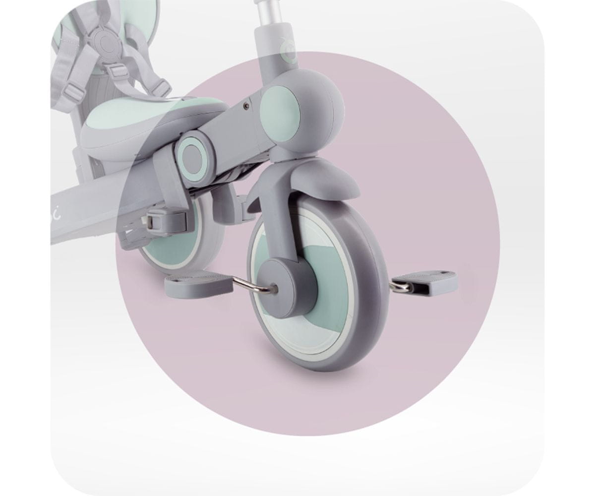 - Funkcija slobodnog trčanja – kada roditelj vozi tricikl, dijete može slobodno držati noge na pedalama.