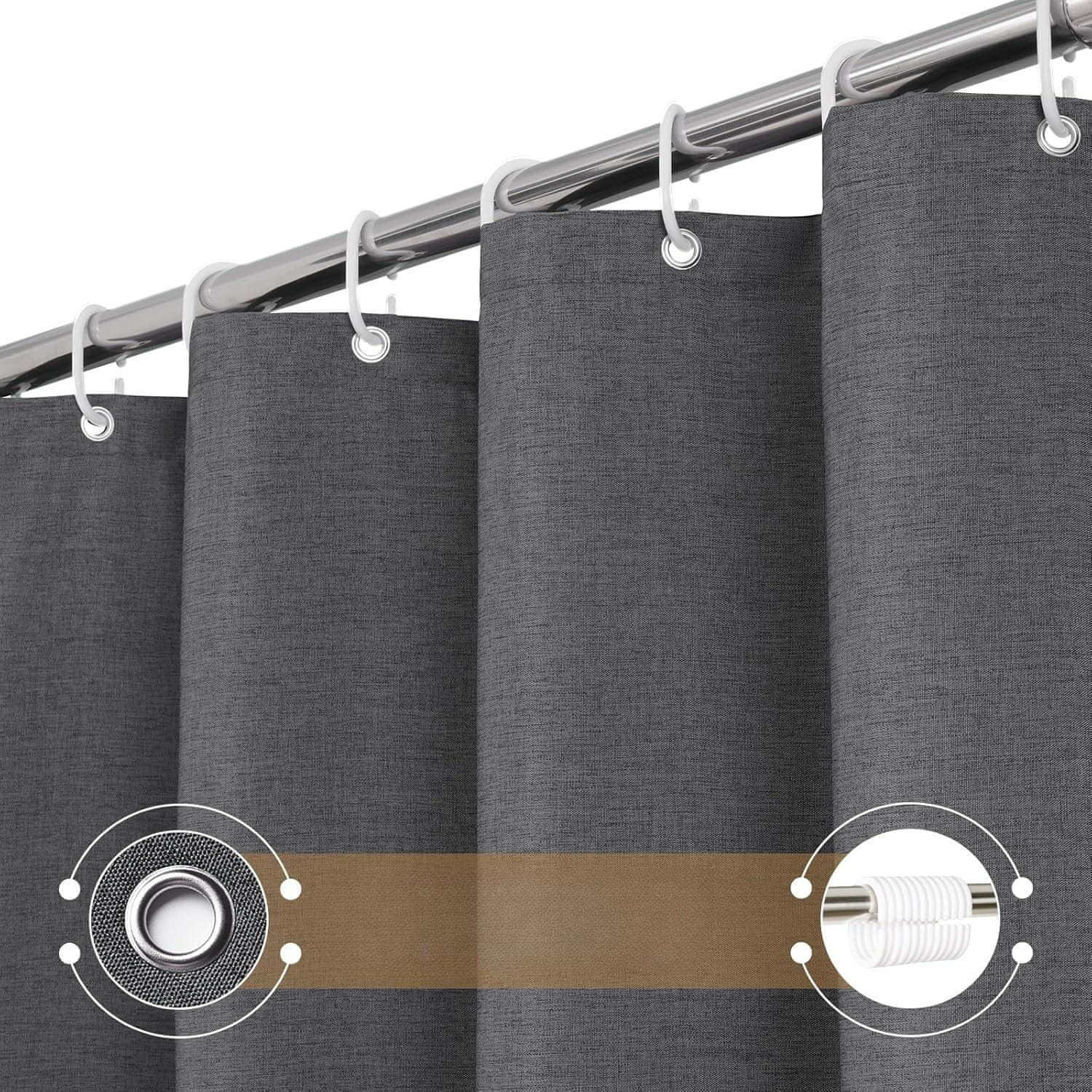 Nikcorp Zavjesa za tuš vodootporna i otporna na plijesan, siva, 180x180 cm, s metalnim prstenovima i 12 kukica, tekstura lana