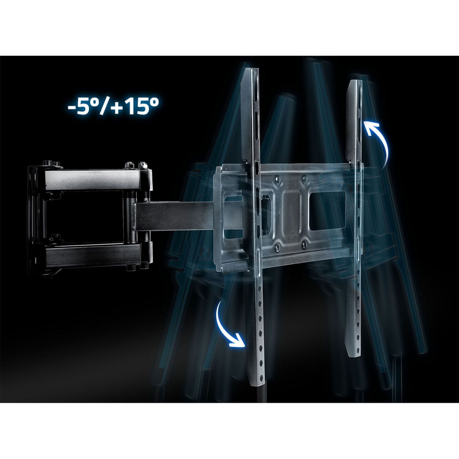 - Vertikalno podešavanje od –5° do 15° minimizira refleksije i poboljšava udobnost gledanja.