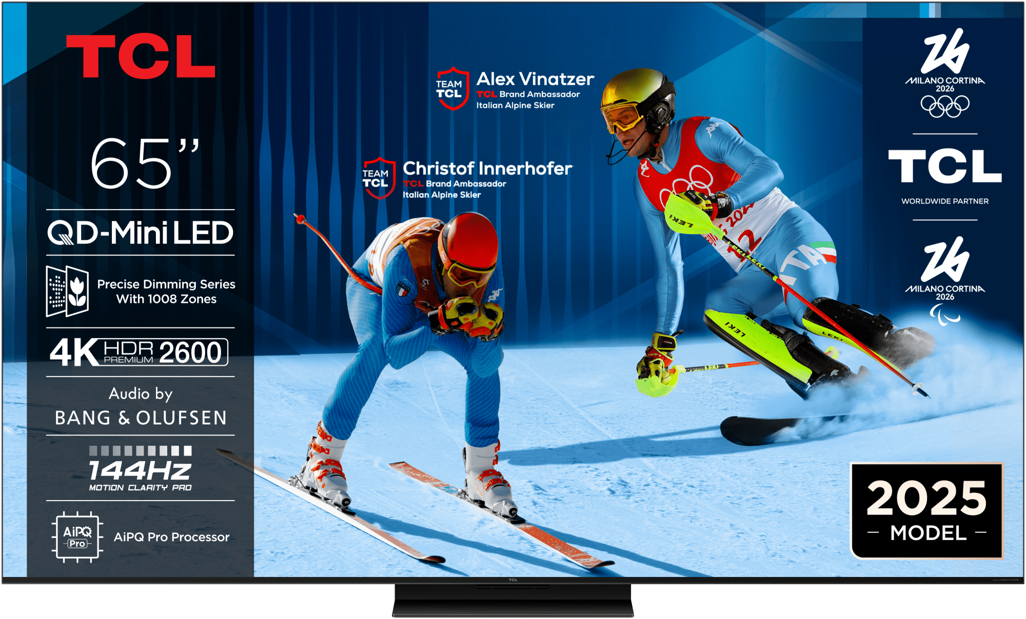 QD-Mini LED HDR Premium TV s dijagonalom od 165 cm (65"). Premium Precise Dimming tehnologija, 144 Hz Motion Clarity Pro, Crystglow HVA panel, svjetlina do 2600 nita, Bang & Olufsen 2.2 zvuk sa 60 W, Dolby Atmos i DTS:X. Uključuje Google TV, HDMI 2.1, Game Master funkcije, ugrađen mikrofon.