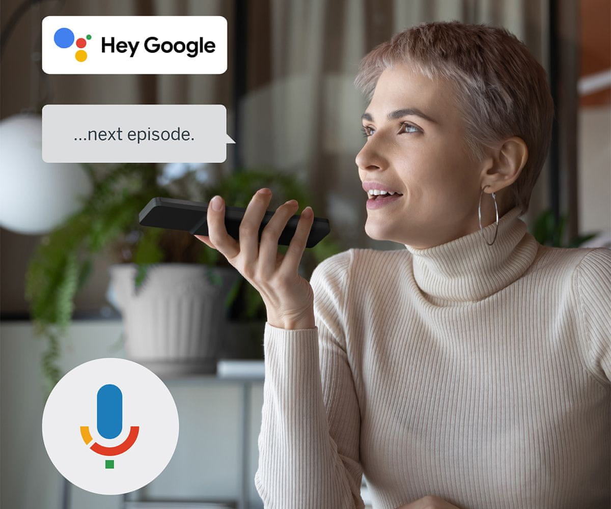 Ergonomski daljinski upravljač s pozadinskim osvjetljenjem omogućuje vam upravljanje svime, čak i pri slabom osvjetljenju. Integrirani Google Assistant omogućuje vam intuitivno upravljanje televizorom glasovnim naredbama. Pretražite svoje omiljene filmove, zatražite preporuke na temelju raspoloženja ili upravljajte kompatibilnim pametnim uređajima – sve uz praktičnost vašeg glasa. Uživajte u besprijekornoj integraciji s vašim pametnim domom i mogućnosti reprodukcije glazbe, pretraživanja filmova ili otvaranja aplikacija.