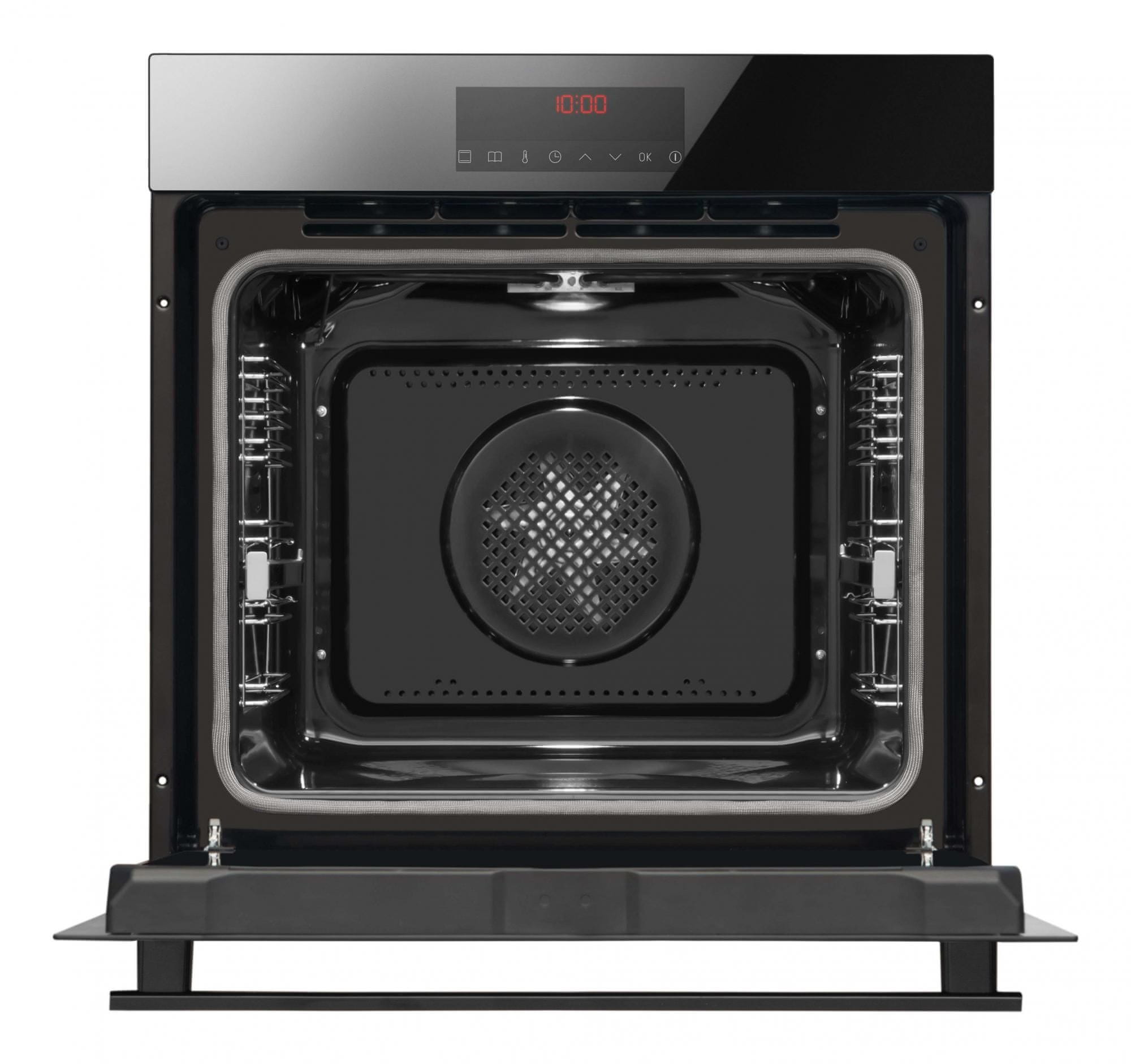 Elegantna ugradbena pećnica s crnim staklom jednostavna je za upravljanje putem digitalnog zaslona i nudi čak 19 unaprijed postavljenih programa pečenja za peciva, pizzu, kruh i druge delicije. Za lakše kuhanje i čišćenje opremljena je funkcijom pirolize koja vlastitom toplinom čisti unutrašnjost pećnice. Pećnica se zagrije za 4 minute, tako da ne morate brinuti o prethodnom zagrijavanju pećnice.