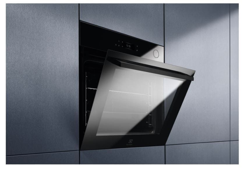 LED zaslon s tipkama na dodir omogućuje jednostavan odabir funkcija i načina pečenja te spremanje omiljenih programa. Jednostavno automatsko čišćenje omogućuje piroličko čišćenje, koje na visokoj temperaturi pretvara ostatke prljavštine u pepeo, koji se zatim jednostavno obriše. Pećnica vas također upozorava kada je potrebno čišćenje. Uklonjiva vrata omogućuju temeljito čišćenje bez napora. Tako će vaša pećnica uvijek biti čista i sjajna. Impresionira mogućnošću daljinskog upravljanja putem aplikacije Moja Electrolux kuhinja.