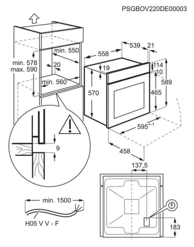 Ugradbene dimenzije | 593 × 560 × 550 mm |