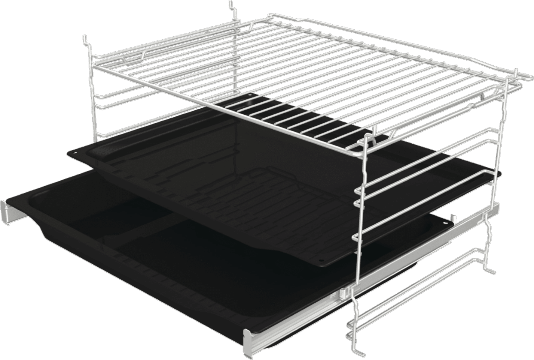 Teleskopske vodilice omogućuju sigurno i jednostavno rukovanje posudama za pečenje bez potrebe za posezanjem duboko u zagrijanu pećnicu. osim toga, oni također olakšavaju provjeru i kušanje jela na licu mjesta.