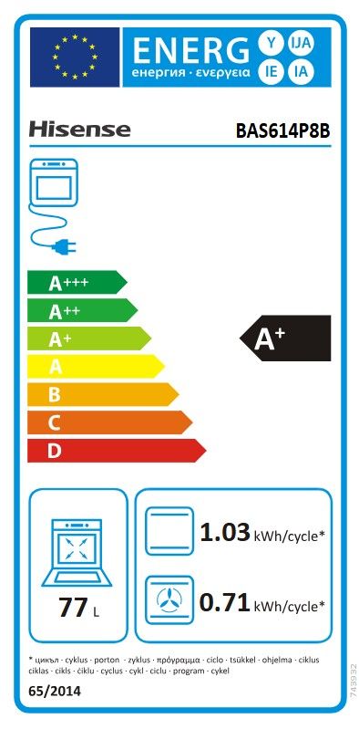 | Potrošnja energije pećnice s ventilatorom | 0,71 kWh/ciklus |