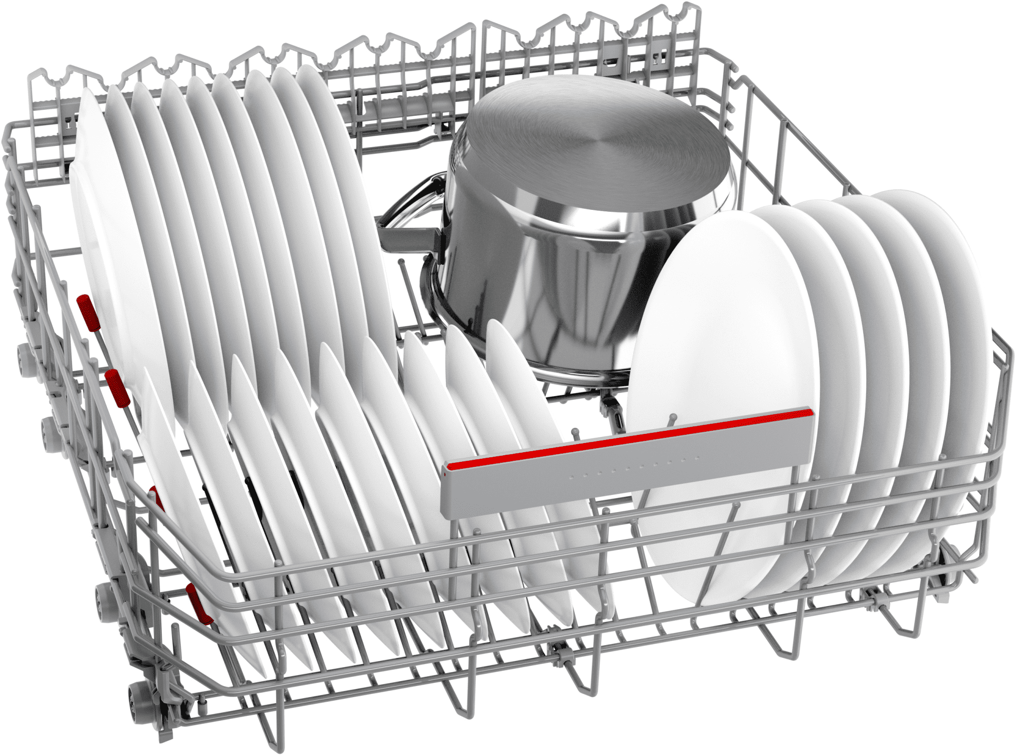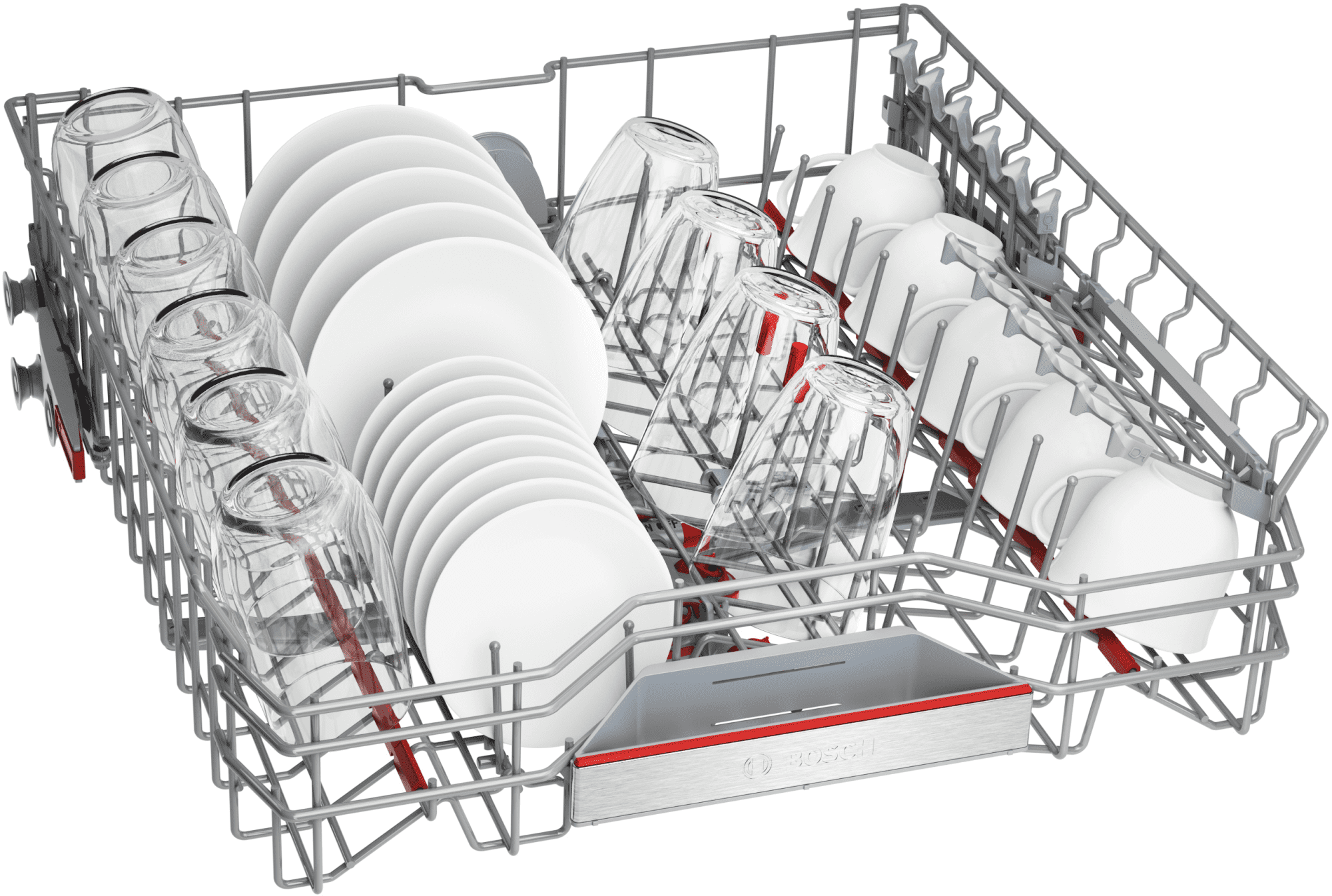 Inovativni sustav košara Max Flex s izmjeničnim pomičnim policama u donjoj košari omogućuje posebno jednostavno i stabilno slaganje većih predmeta. Gornja košara sadrži držač za čaše i potpornu žicu za još sigurnije postavljanje različitih čaša. Za manje komade, na vrhu je ladica za pribor za jelo VarioDrawer. Zahvaljujući trostrukom sustavu Rackmatic, lako možete podesiti visinu gornje košare na tri razine. AquaStop pouzdano štiti od curenja. Kada senzor detektira curenje, perilica posuđa se automatski isključuje i ispušta vodu kroz crijevo s dvostrukom stijenkom.