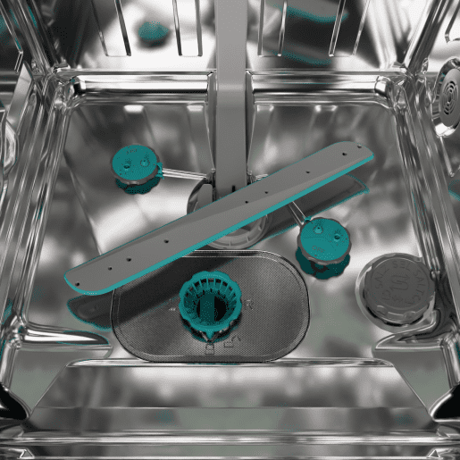 Perilica posuđa ima 3 prskalice – na vrhu, dnu i u sredini. Dodatna prskalica na vrhu pruža bolju pokrivenost vodom, tako da su rezultati pranja do 30% bolji nego kada koristite samo dvije ruke.