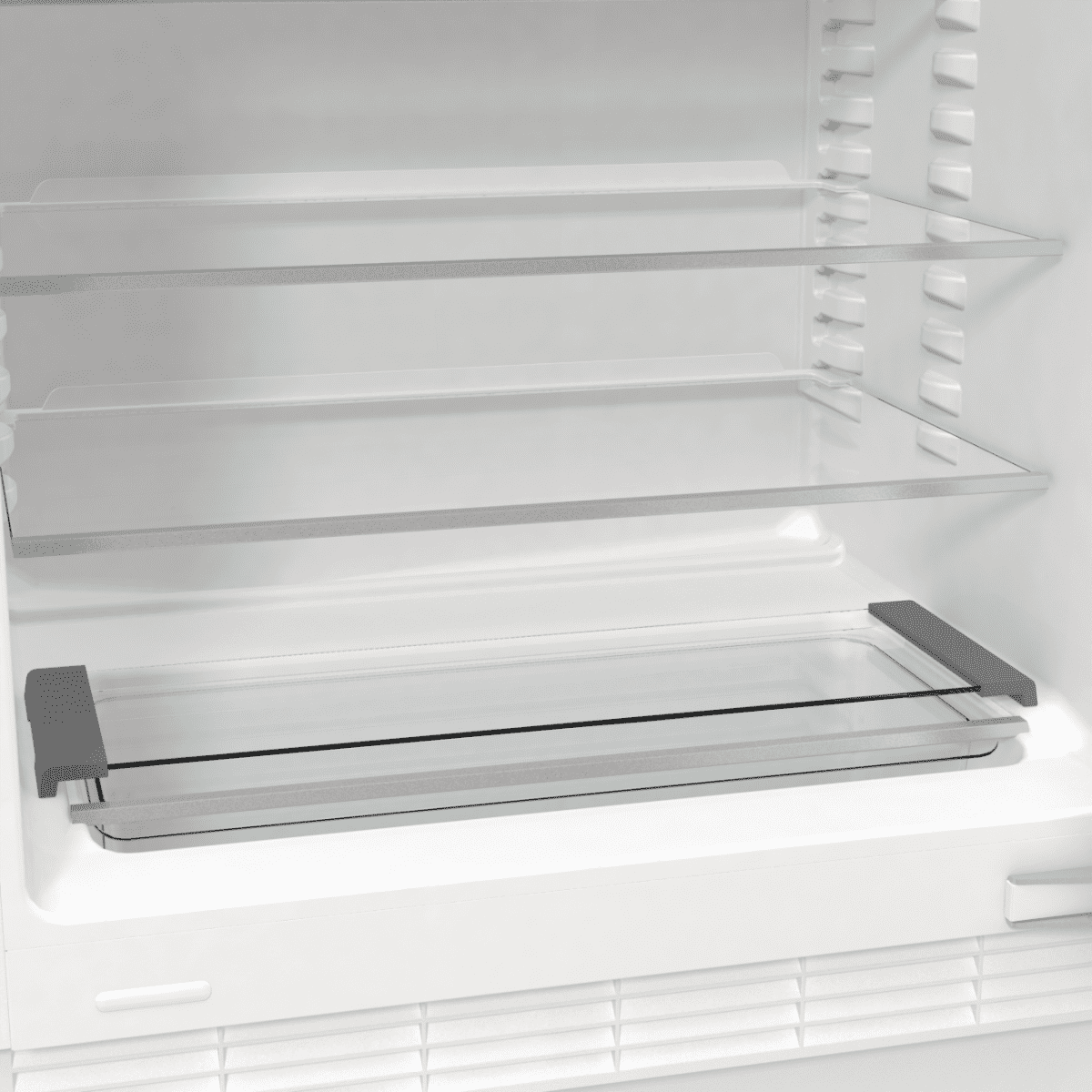 Vrata se mogu otvoriti do kuta od 115° i mogu pohraniti čak i teže predmete zahvaljujući masivnim šarkama. Osim toga, umetanje ili uzimanje hrane također je olakšano. Samozatvarajuća šarka će automatski zatvoriti vrata ako ostanu zatvorena.