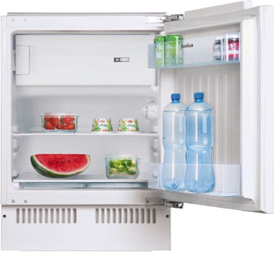 Ugradbeni hladnjak Amica UM130.3 pripada energetskom razredu F. Ima 111 L volumena i radi glasnoćom od 40 dB. Malen je, priručan i jednostavan za montažu.