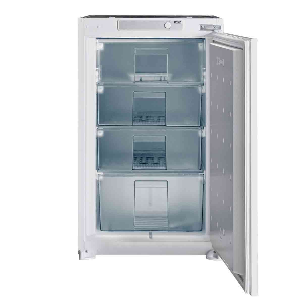 Ugrađeni zamrzivač Vox Electronics IVF 1450 F pripada energetskom razredu F i godišnje troši 221 kWh energije. Njegov volumen je 95 litara. Sadrži 4 ladice koje pružaju dobar pregled pohranjene hrane. Zamrzivač ima mehaničko upravljanje i ručno odmrzavanje. U roku od 24 sata u njemu možete zamrznuti 6 kg hrane. Sadrži statički sustav hlađenja. Također uključuje posudu za led i omogućuje vam promjenu smjera otvaranja vrata.