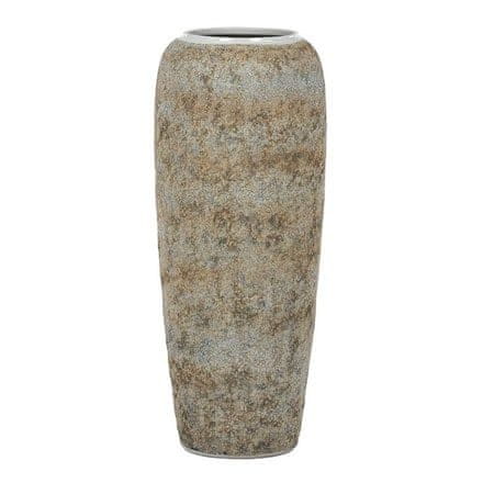 Keramička vaza visine 90 cm u sivo-bež kombinaciji s prepoznatljivom zrnatom obojenom površinom unosi dašak starine u interijer. Izmjena nijansi smeđe, bež i sive stvara zanimljiv efekt, dok blago zaobljeni oblik evocira izgled povijesne posude. Izvrstan izbor za veće biljke i cvijeće koje će se u njoj lijepo istaknuti.
