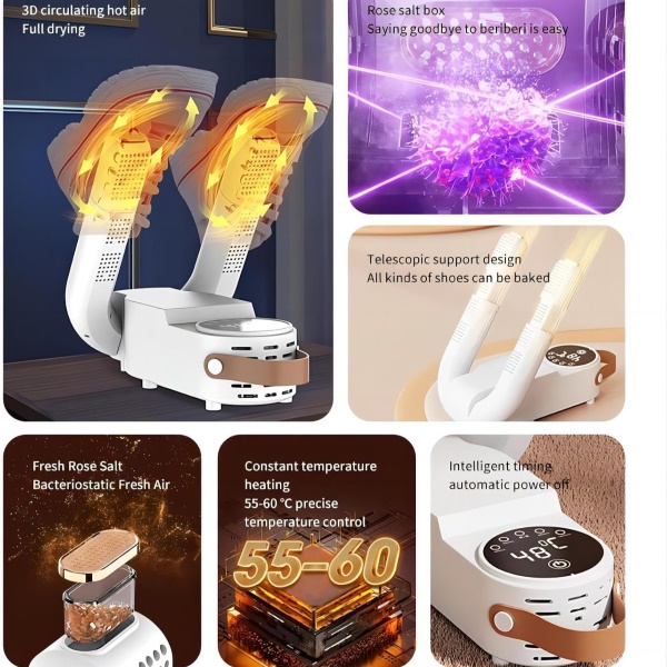 DRYVATUS brzi sušač obuće 🌟 Uništava bakterije i vlagu, uklanja neugodne mirise i suši svu obuću za 15–30 minuta. Lagan, kompaktan i siguran, ravnomjerno grije cipele bez oštećenja, idealan za dom i putovanja.