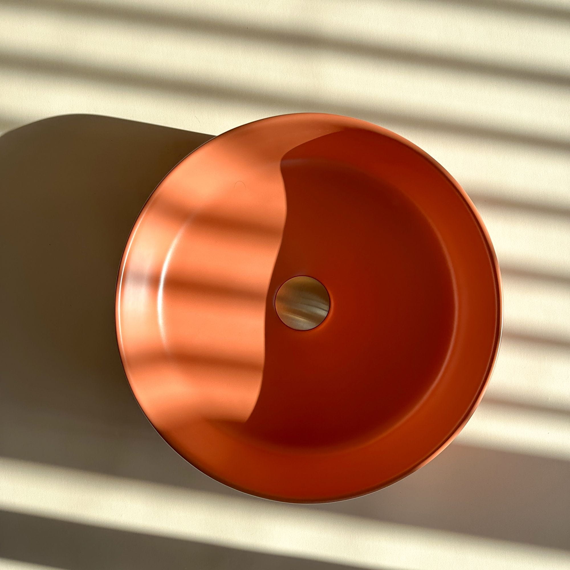 Predstavljamo stolni umivaonik koji će vašoj kupaonici dati moderan izgled i visoku funkcionalnost. Umivaonik je izrađen od visokokvalitetne sanitarne keramike. Naša široka ponuda uključuje slavine, sifone i čepove. Pozivamo Vas da se upoznate s našom ponudom.Način montaže: Na pločuMaterijal: Sanitarna keramikaBoja: NarančastaZavršetak: MatDuljina: 370Širina: 370Visina: 135Dubina: 110Oblik: OkrugliOtvor za slavinu: 0Preljevna rupa: 0