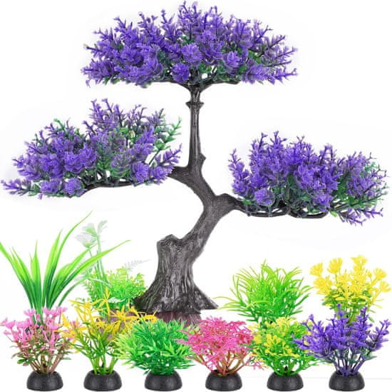 Umjetno Drvce za Akvarij Ljubičasto Set s Obojenim Grmovima