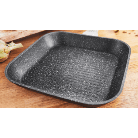 Tava za roštilj Polka Exclusive 28 Grill Wood&Rock, promjera 28 cm. Izrađena od kovanog aluminija s Teflon® neprianjajućim premazom. Tava je prikladna za sve vrste štednjaka i može se prati u perilici posuđa.