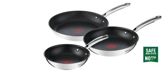 Set tava Duetto+ marke Tefal olakšava vam rad u kuhinji. Tave su izrađene od visokokvalitetnog nehrđajućeg čelika, a zajedno sa zakovicom i posebnim premazom protiv lijepljenja, kuhanje će biti zadovoljstvo. Posude su pogodne i za pećnicu i za perilicu posuđa.