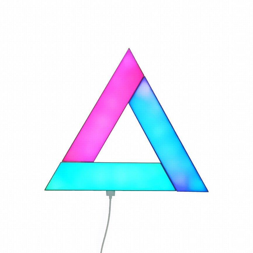 Zabavna dekorativna LED zidna lampa koja mijenja boje prema vašem izboru ili prema glazbi. Paket sadrži 9 dijelova u obliku trapeza koje možete slagati u bilo koji oblik i međusobno povezivati USB spojnicama. Samo je na vama kako ćete složiti lampu. Lampa se upravlja pomoću daljinskog upravljača, na kojem se može podesiti različite boje i 9 dinamičkih načina rada. Lampa također može reagirati na zvukove iz okoline, glas i glazbu. Moguće je postaviti i tajmer. U paketu se nalazi 1,5 m dugački kabel za napajanje s adapterom.