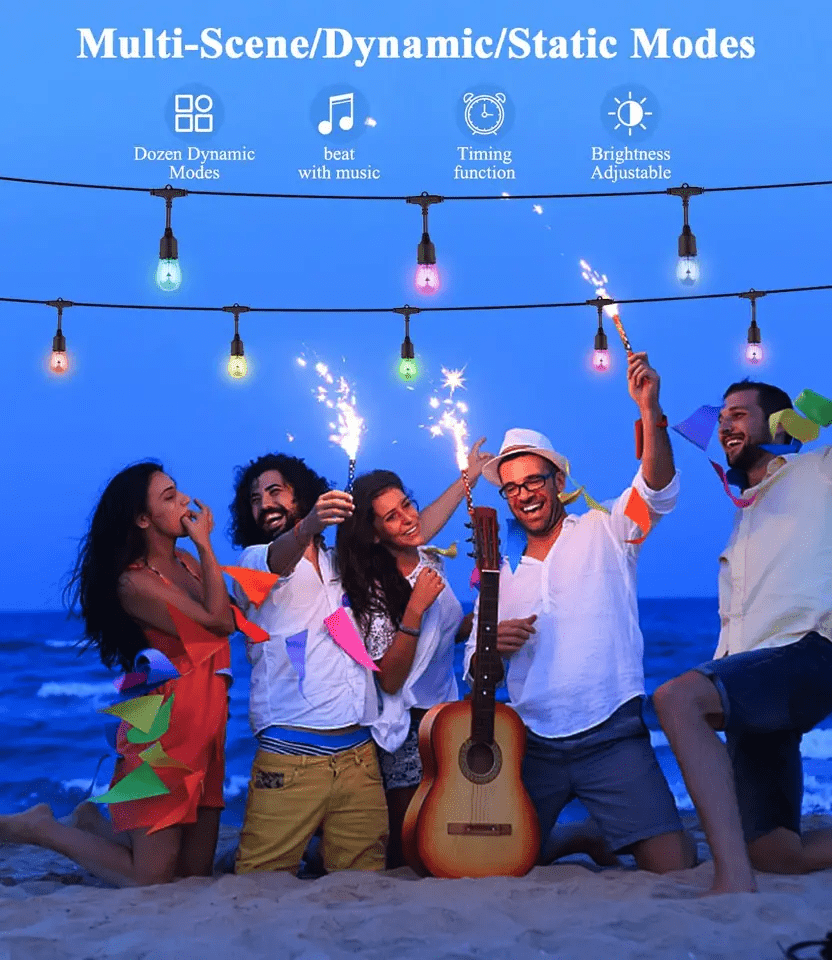 Pametni vanjski LED party lanac osvijetlit će svaku zabavu i uljepšati blagdanski ugođaj. Lanac je pogodan za osvjetljenje vanjskog vrta i druženja s prijateljima. Velika varijabilnost postavki (reakcija na glazbu, tajmer, izbor boja, podešavanje svjetline itd.) čini ga idealnim proizvodom za svadbene dekoracije.