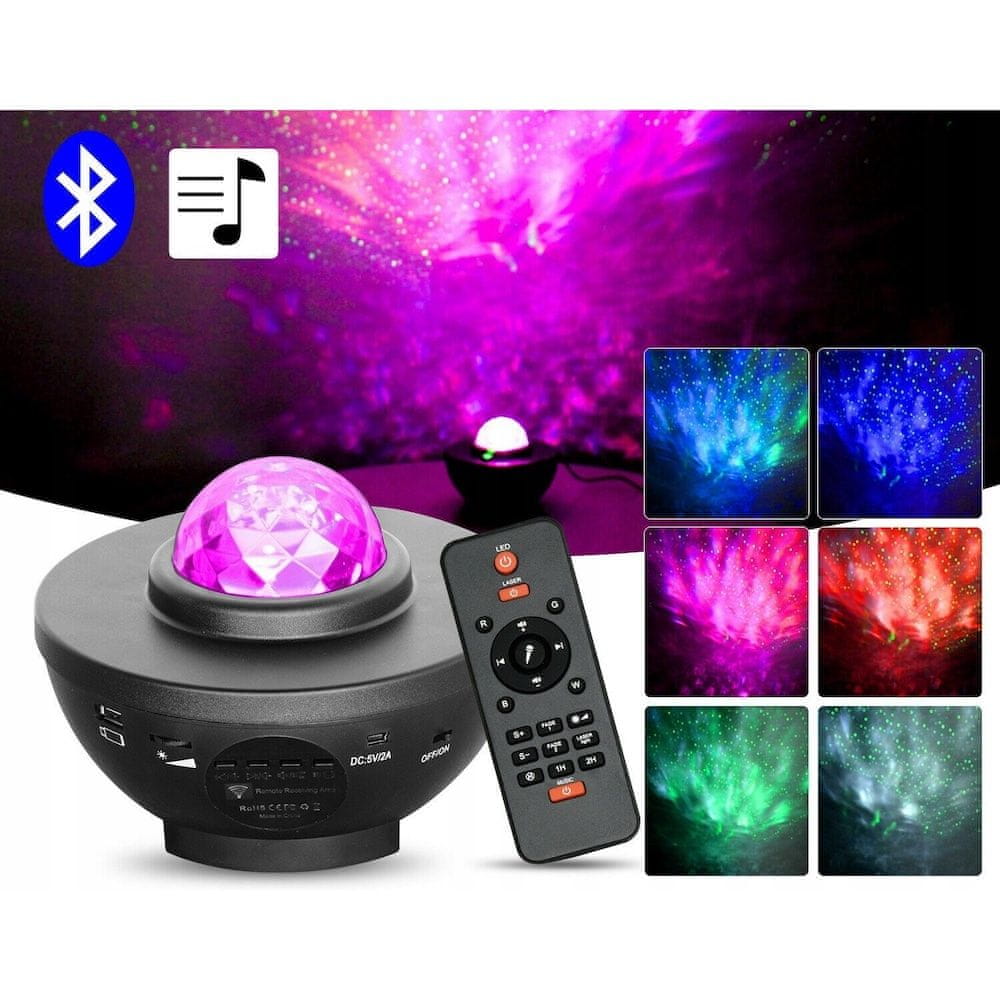 Projektor se može koristiti kao noćna lampa i projektor noćnog neba. Vaša djeca mogu uživati u svemirskoj predstavi uz ovaj projektor. Ono što ovaj projektor izdvaja od ostalih svakako je bolja kvaliteta i raznovrsnost projekcija. Uređaj može imitirati projekciju šarene i umirujuće galaksije ili morskih valova. Osim toga, može emitirati laserske zrake i međusobno kombinirati različite efekte u 4 boje: crvenoj, zelenoj, plavoj i bijeloj. Možete birati između ukupno 21 svjetlosnog efekta!