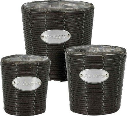 ProGarden Lonac za cvijeće KO-430000640 Pleteni set od 3 cvjetne posude FLOWERS GARDEN 24 / 20 / 18 cm antracit
