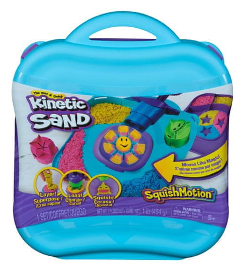 Set Squishmotion uključuje 3 različite šablone za stvaranje prekrasnih oblika, 1 jastuk, 1 ručicu za guranje i 3 različite boje kinetičkog pijeska. Sa setom možete izraditi čudesne skulpture koje će impresionirati vaše prijatelje.