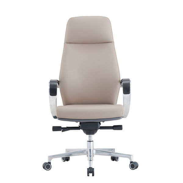 Moderan uredski stolac obložen kvalitetnom umjetnom kožom PU bež boje. Nasloni za ruke s aluminijskom potporom su obloženi na vrhu. Stolac ima ugrađen multifunkcionalni mehanizam. Može se podesiti visina i rotacija. Podnožje je napravljeno od aluminija. Uključeni su gumirani kotači.