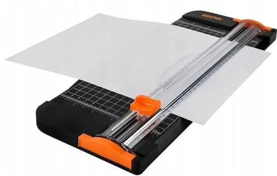 Rezač papira podržava širok raspon formata, do A3 formata. Rezač je toliko svestran i može biti alat, koji možete uspješno koristiti za sve vrste poslova. Precizna oštrica odjednom reže do 12 listova papira gramature do 80 g/m2. Ljestvica, izražena u centimetrima i inčima, olakšava poravnavanje papira i određivanje linije rezanja. Giljotina ima i oznaku kut, koja omogućuje rezanje papira pod kutovima od 45° do 90°. Za manje formate papira i jednostavniji rad koristi se osnovna mreža s mjerama, a za veće formate potrebno je razviti dodatnu skalu, koja se pričvrsti na dno stroja.