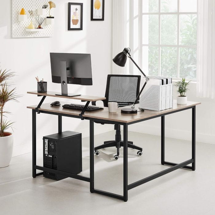 Optimizirajte svoj radni prostor s VASAGLE L-oblikovnim računalskim stolom, koji kombinira industrijski dizajn s izuzetnom funkcionalnošću. Ovaj stol je dizajniran da se uklopi u kut vaše sobe, omogućujući učinkovito korištenje prostora i stvarajući prostranu radnu površinu za vaše uredske ili studijske potrebe.