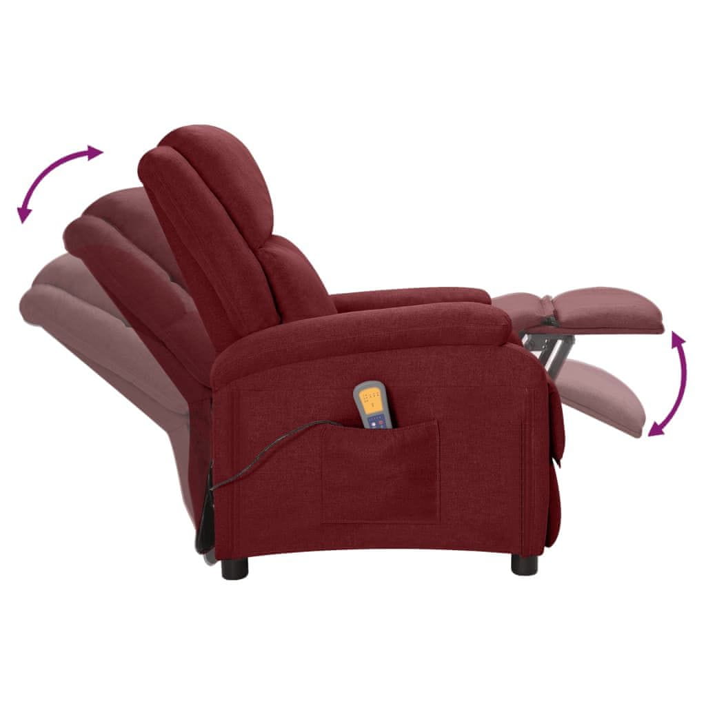 Vidaxl Masažna fotelja s krilnim naslonom crvena boja vina od tkanine