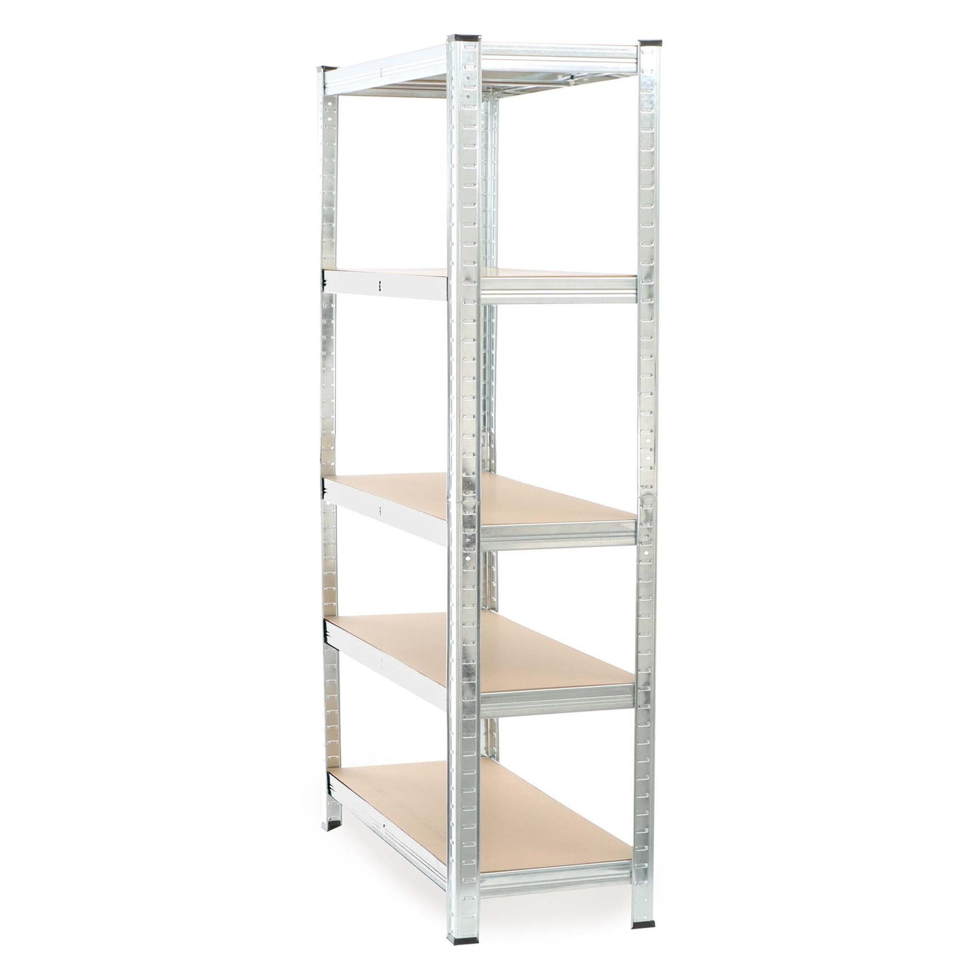 • Sa 5 polica • 175 kg nosivosti po polici – ukupno 875 kg • Čelik, pocinčani i MDF • Vanjske dimenzije: 180 × 90 × 40 cm • Praktičan sustav utikača