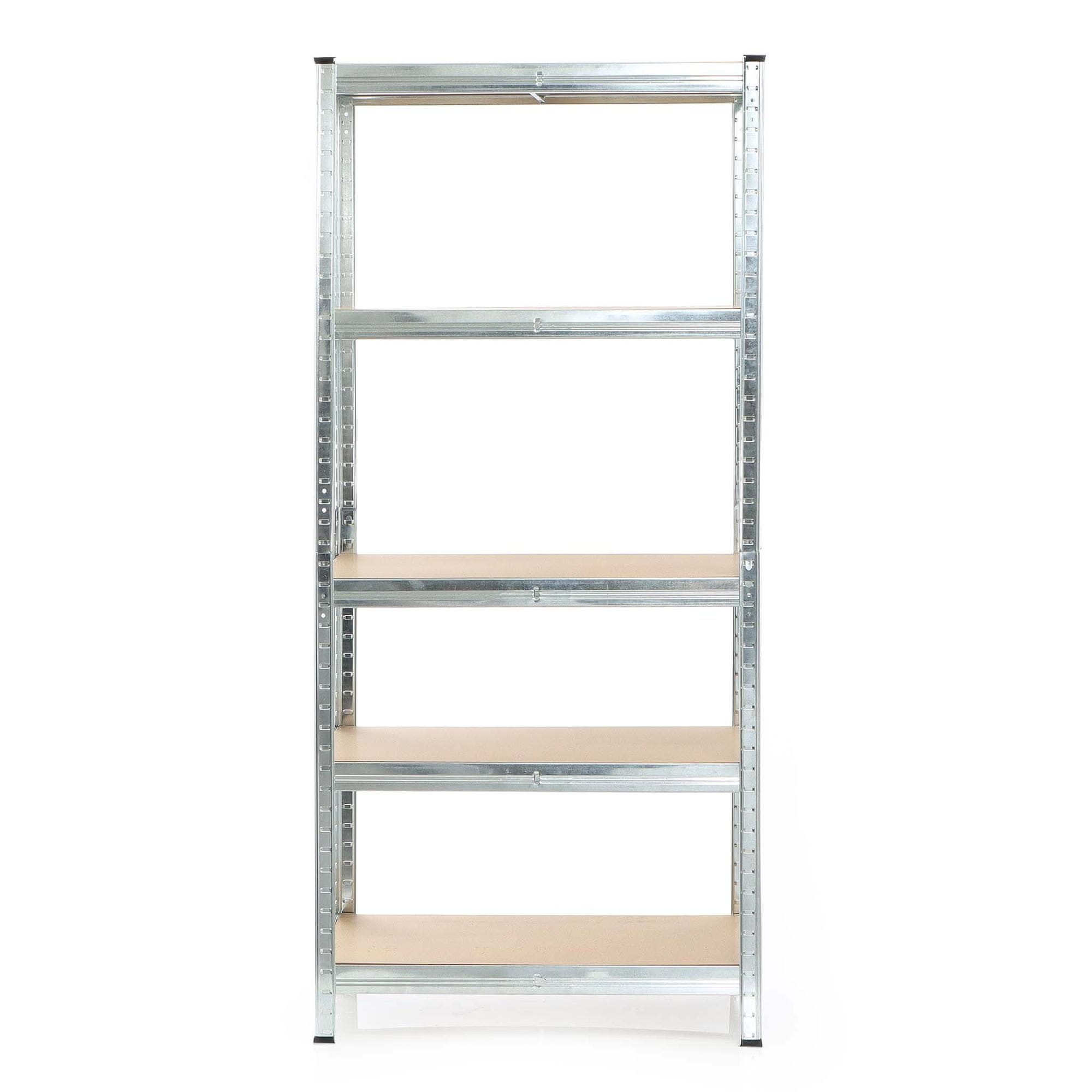 • Sa 5 polica • 175 kg nosivosti po polici – ukupno 875 kg • Čelik, pocinčani i MDF • Vanjske dimenzije: 180 × 90 × 45 cm • Praktičan sustav utikača