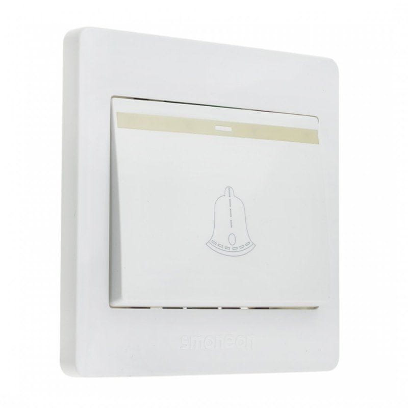 Tlačivko zvona s elegantnim natpisom. Pogodno je za postavljanje unutar objekta za zvonjenje na unutarnju jedinicu (monitor). Pogodno u kombinaciji s dodatnom kamerom na mjestu postavljanja.