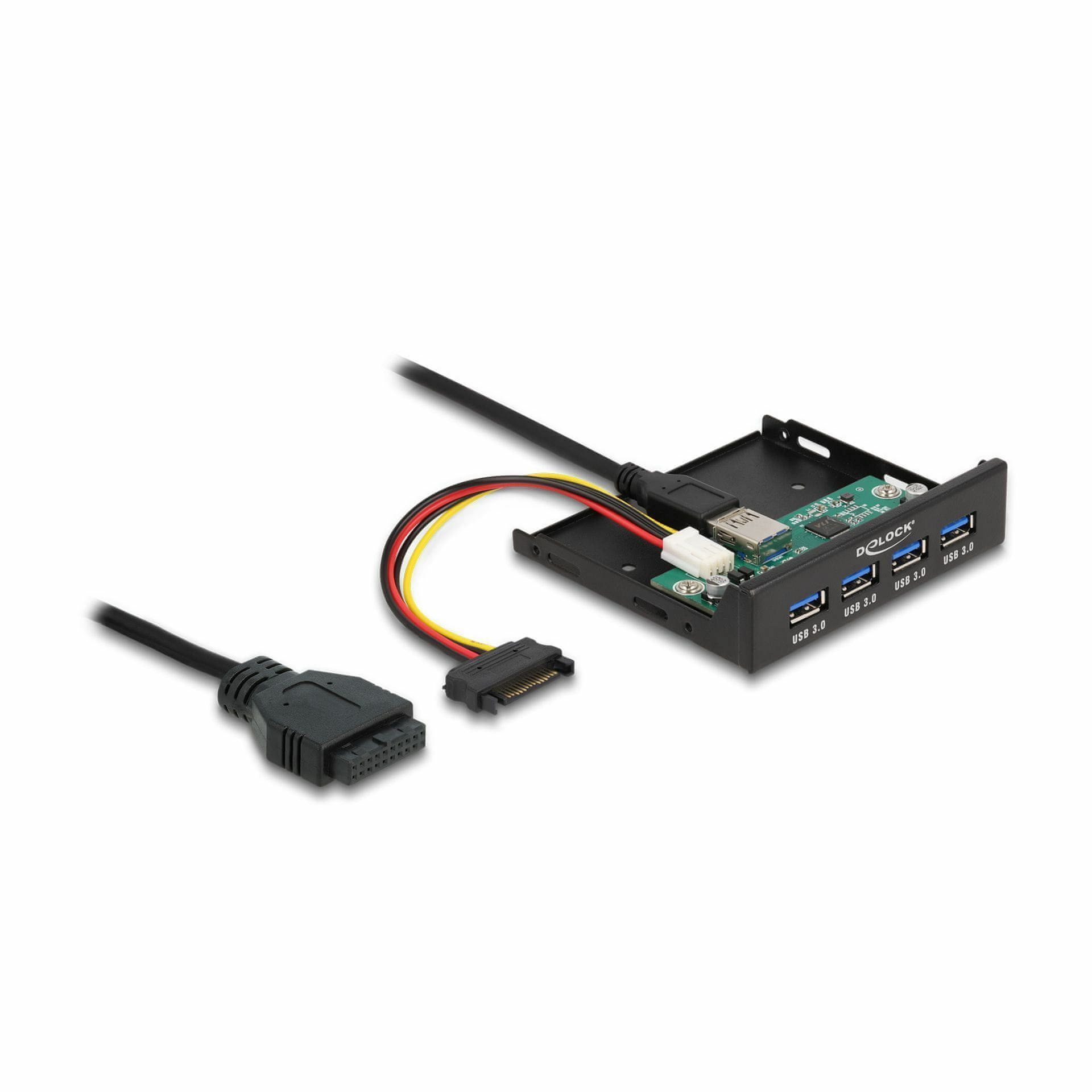 Ovaj Delock razdjelnik može se ugraditi u ležište stolnog računala od 3.5″. On će se interno povezati putem USB muške priključnice na matičnu ploču. Može povezati do četiri USB uređaja, primjerice priključnu stanicu, čitač kartica, vanjska kućišta, itd.