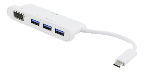 DELTACO USB čvorište hub USBC-HUB101, 3 x USB, VGA, USB-3.1 C, bijeli