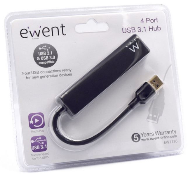 USB hub EW1136 omogućuje vam da proširite funkcionalnost prijenosnog računala s četiri dodatna USB 3.1 priključka za povezivanje do četiri vanjska uređaja. Cijeli opis