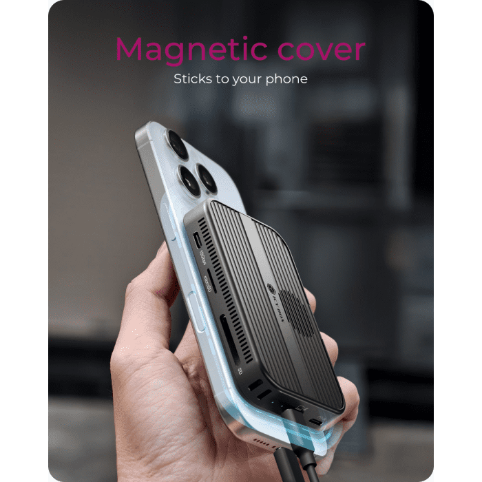 IB-DK4071M-CU31 je višenamjenska 7-u-1 dok stanica dizajnirana za korisnike koji trebaju brzo povezivanje i snažno vanjsko pohranjivanje u jednom kompaktno rješenje. Uređaj uključuje integrirani kućište za M.2 NVMe i SATA SSD diskove s podrškom do 8 TB, što ga čini pogodnim za rad s opsežnim datotekama, sigurnosnim kopijama ili multimedijskim knjižnicama. Ugrađeni ventilator osigurava učinkovito hlađenje tijekom rada. DockingStation nudi kombinaciju USB-C i USB-A (Gen 2) priključaka s brzinama do 10 Gbit/s, HDMI izlaz s razlučivosti 4K pri 60 Hz, te SD i microSD utore s brzinama do 104 MB/s. USB-C PD-IN port omogućuje napajanje do 100 W putem Power Delivery 3.0, što omogućuje punjenje povezanih uređaja i uredno radno okruženje bez dodatnih napajanja. Magentni pokrov omogućuje jednostavno pričvršćivanje na stražnju stranu telefona ili drugih kompatibilnih uređaja, što osobito koristi korisnicima koji trebaju dodatno pohranjivanje na putu. IB-DK4071M-CU31 je kompatibilan s operativnim sustavima Windows, macOS i Linux, stoga ga možeš pouzdano koristiti u različitim radnim okruženjima bez dodatnih postavki ili upravljačkih programa.